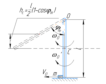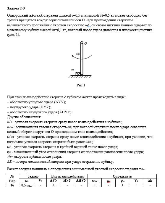 w0m – минимальная угловая скорость w0, при которой стержень после удара совершит полный оборот вокруг оси O при заданном типе взаимодействия;