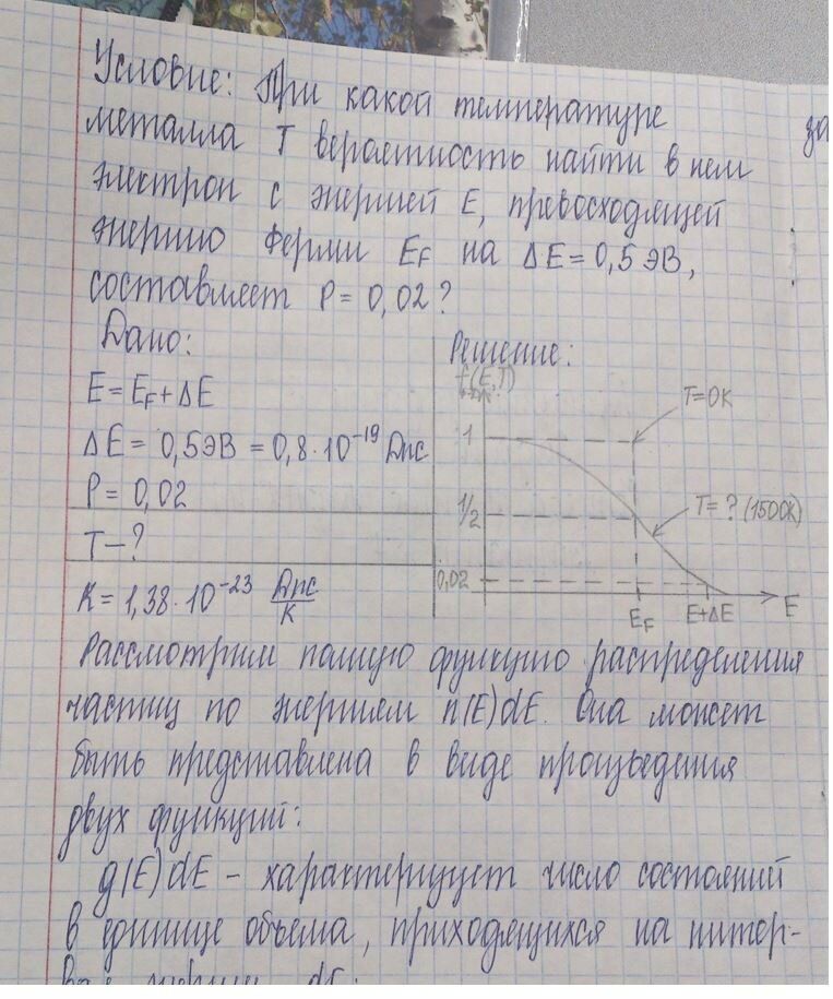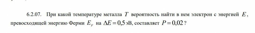 6.2.07. При какой температуре металла T вероятность найти в нем электрон с энергией E, превосходящей энергию Ферми EF на E  0,5 эВ, составляет P  0,02 ?