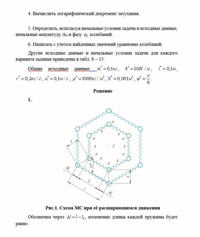 1. Вывести дифференциальное уравнение малых свободных затухающих колебаний, если сила сопротивления движению тела КС пропорциональна скорости, т.е., где r - коэффициент сопротивления.