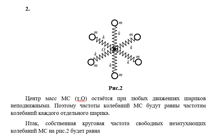 Для механических систем (МС), расположенных на горизонтальной плоскости и представленных на рис. 22 – 25, определить круговую частоту и период собственных незатухающих колебаний. Значения масс шариков, жёсткость соединяющих их пружин, а также другие исходные данные приведены в табл. 8. Трением шариков при их движении о контактную горизонтальную плоскость пренебречь.Вар | Рис | m | k | l0 | l | r | V1 | V2 |