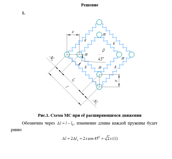 Для механических систем (МС), расположенных на горизонтальной плоскости и представленных на рис. 22 – 25, определить круговую частоту и период собственных незатухающих колебаний. Значения масс шариков, жёсткость соединяющих их пружин, а также другие исходные данные приведены в табл. 8. Трением шариков при их движении о контактную горизонтальную плоскость пренебречь.Вар | Рис | m | k | l0 | l | r | V1 | V2 |