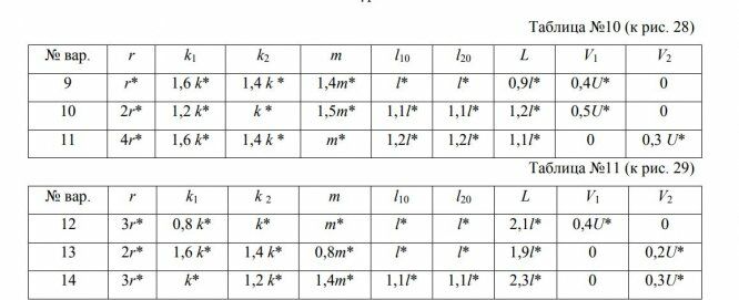 Вар | r | k1 | k2 | m | l10 | l20 | L | V1 | V2 |