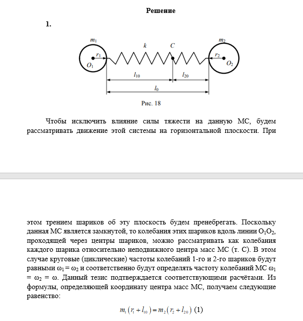 Механическая система для этой задачи расположена на горизонтальной плоскости и представлена на рис. 18. Значения массы шариков, длина и жёсткость, соединяющих их пружин, а также другие исходные данные приведены в табл.9..