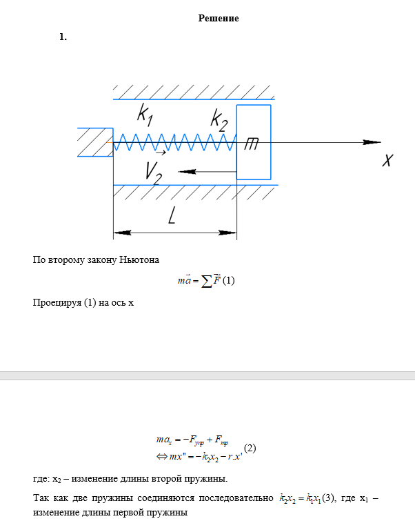 Задача 3-3 для вариантов с 9 по 20 Каждая колебательная система (КС), представленная на рис. 28, 29, 30, 31, состоит из шайбы массой m и двух упругих пружин, имеющих жесткости k1 и k2 . Движение КС происходит в окружающей среде с малыми вязкими свойствами (малым коэффициентом сопротивления r). .