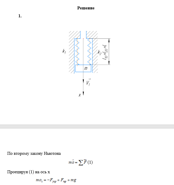 Задача 3-3 для вариантов с 9 по 20 Каждая колебательная система (КС), представленная на рис. 28, 29, 30, 31, состоит из шайбы массой m и двух упругих пружин, имеющих жесткости k1 и k2 . Движение КС происходит в окружающей среде с малыми вязкими свойствами (малым коэффициентом сопротивления r). .