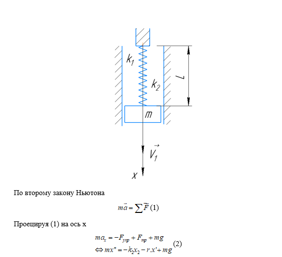 Задача 3-3 для вариантов с 9 по 20 Каждая колебательная система (КС), представленная на рис. 28, 29, 30, 31, состоит из шайбы массой m и двух упругих пружин, имеющих жесткости k1 и k2 . Движение КС происходит в окружающей среде с малыми вязкими свойствами (малым коэффициентом сопротивления r).