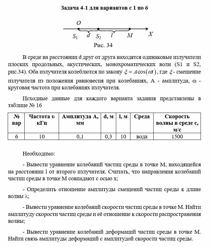 - Вывести уравнение колебаний деформаций частиц среды в точке М. Найти связь амплитуды деформаций с амплитудой скорости частиц среды.