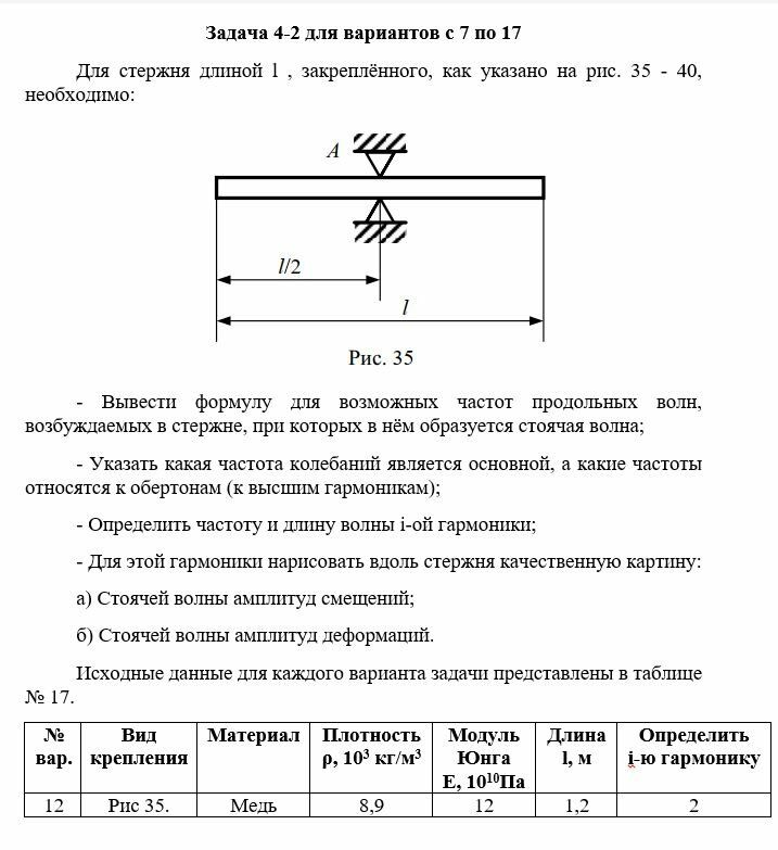 - Вывести формулу для возможных частот продольных волн, возбуждаемых в стержне, при которых в нём образуется стоячая волна;