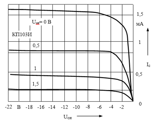 Рисунок 3.1 - Стоковые характеристики полевого транзистора.