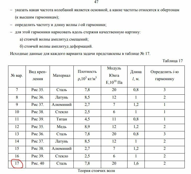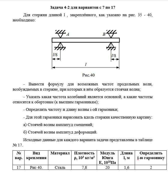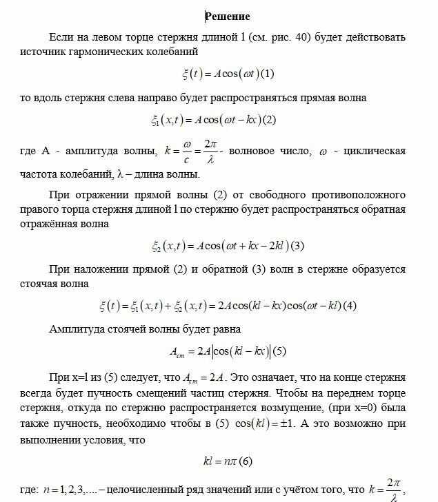 - Вывести формулу для возможных частот продольных волн, возбуждаемых в стержне, при которых в нём образуется стоячая волна;