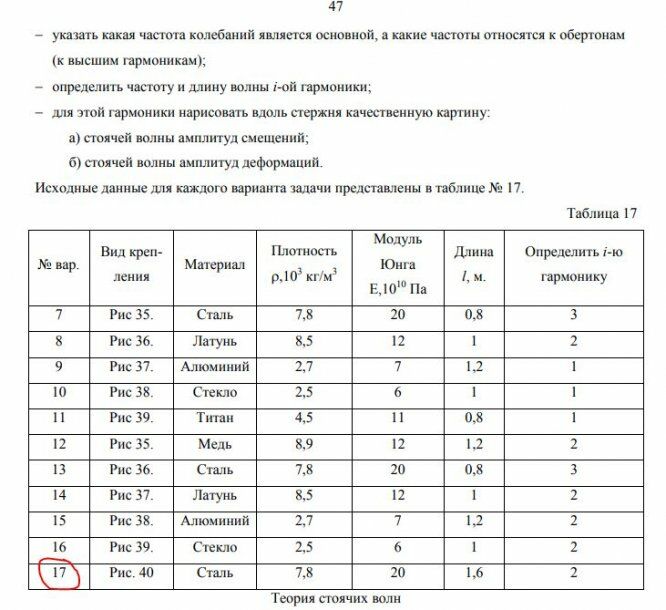 Исходные данные для каждого варианта задачи представлены в таблице № 17.