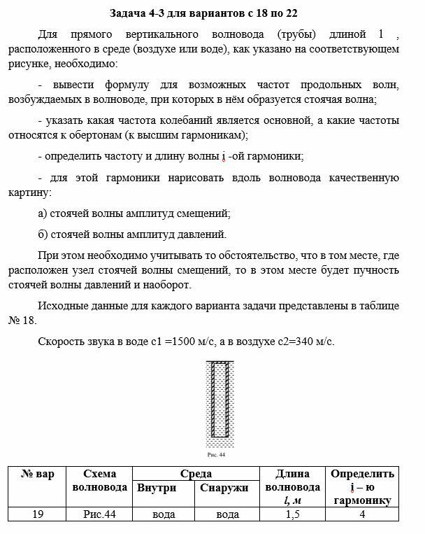Для прямого вертикального волновода (трубы) длиной l , расположенного в среде (воздухе или воде), как указано на соответствующем рисунке, необходимо: