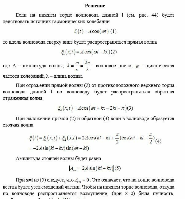 - вывести формулу для возможных частот продольных волн, возбуждаемых в волноводе, при которых в нём образуется стоячая волна;
