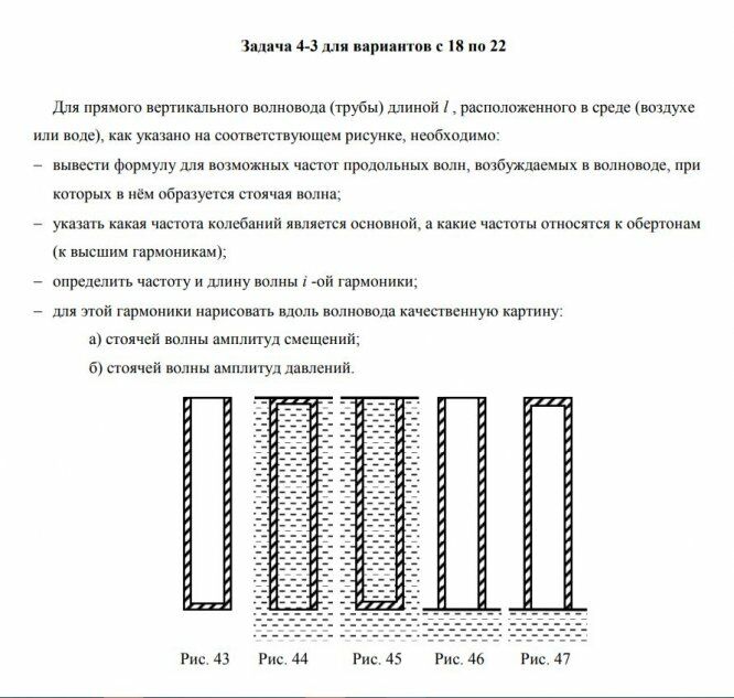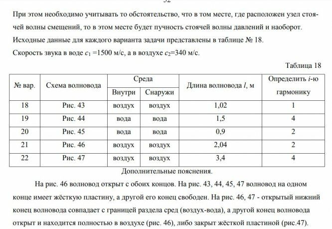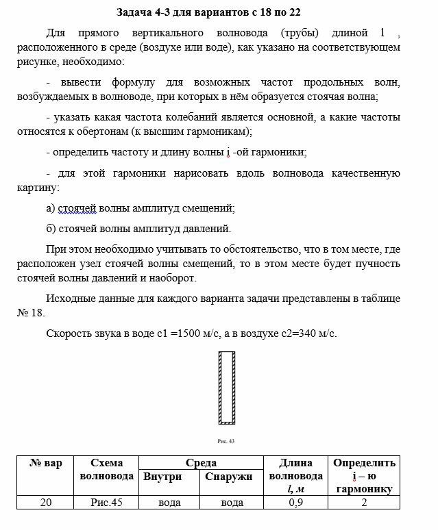 Для прямого вертикального волновода (трубы) длиной l , расположенного в среде (воздухе или воде), как указано на соответствующем рисунке, необходимо: