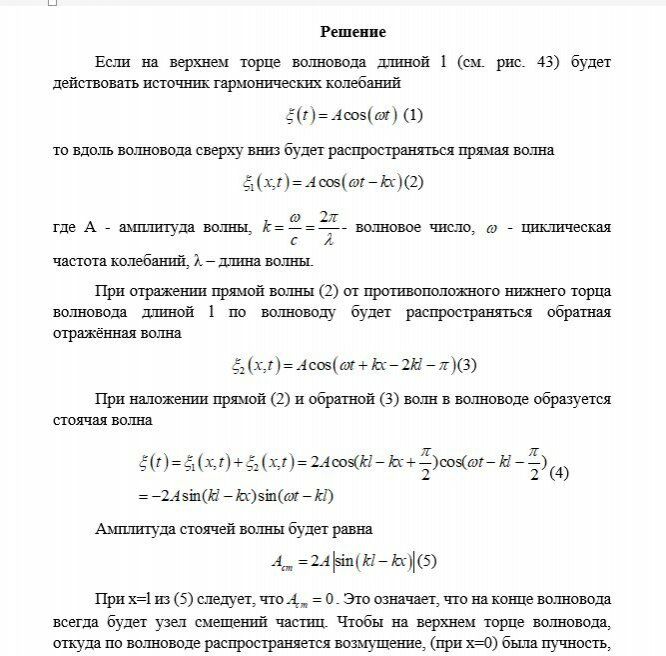 - вывести формулу для возможных частот продольных волн, возбуждаемых в волноводе, при которых в нём образуется стоячая волна;