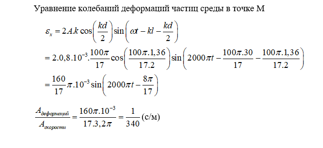 - Вывести уравнение колебаний деформаций частиц среды в точке М. Найти связь амплитуды деформаций с амплитудой скорости частиц среды.