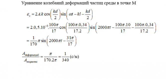 - Вывести уравнение колебаний деформаций частиц среды в точке М. Найти связь амплитуды деформаций с амплитудой скорости частиц среды.