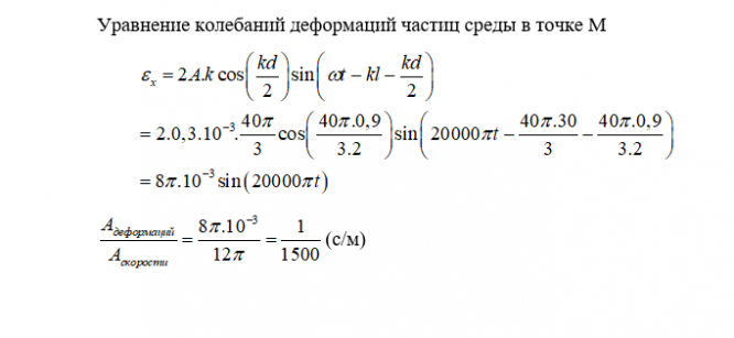 - Вывести уравнение колебаний деформаций частиц среды в точке М. Найти связь амплитуды деформаций с амплитудой скорости частиц среды.