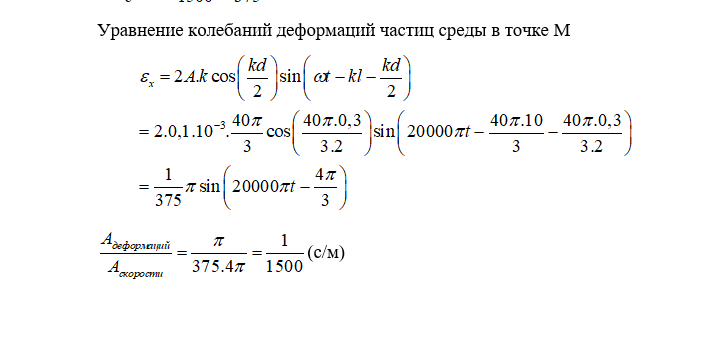 - Вывести уравнение колебаний деформаций частиц среды в точке М. Найти связь амплитуды деформаций с амплитудой скорости частиц среды.