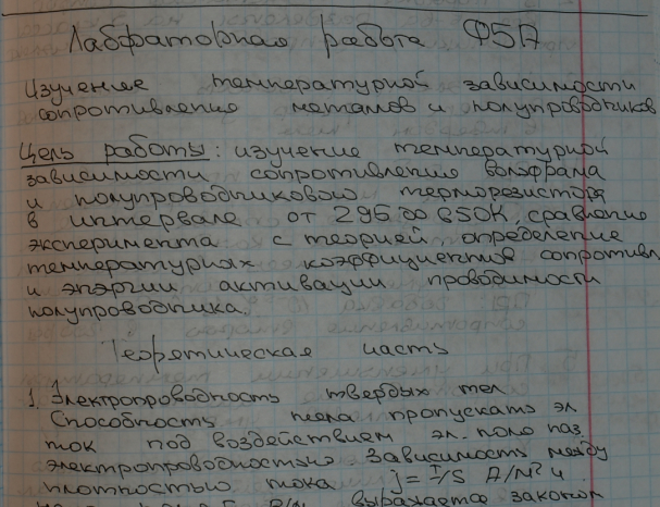 Лабораторная работа Ф: Изучение температурной зависимости сопротивления металлов и полупроводников вариант 5