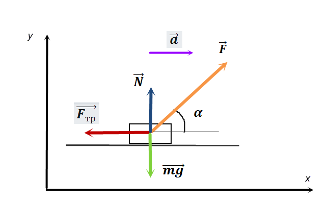 Для студентов по предмету ФизикаНа тело массы m=2 кг, лежащие на горизонтальной плоскости, начинает действовать постоянная сила F=20 Н, направленная под углом α=60º к горизонту. КоэфНа тело массы m=2 кг, лежащие на горизонтальной плоскости, начинает действовать постоянная сила F=20 Н, направленная под углом α=60º к горизонту. Коэф