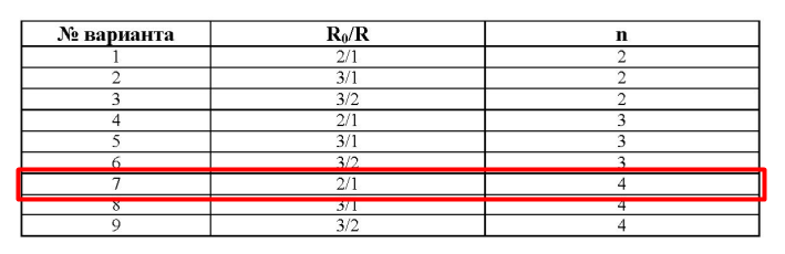 Значения параметров n и R0/R в зависимости от номера варианта .