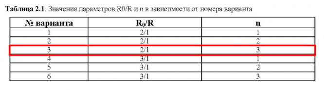Функция =f(r) для нечётных вариантов имеет вид: =(R0 n +Rn -rn )/Rn . Таблица 2.1. Значения параметров R0/R и n в зависимости от номера варианта.