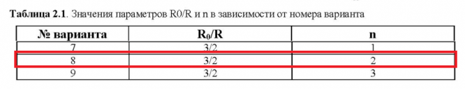 Функция =f(r) для нечётных вариантов имеет вид: =(R0 n +Rn -rn )/Rn . Таблица 2.1. Значения параметров R0/R и n в зависимости от номера варианта .