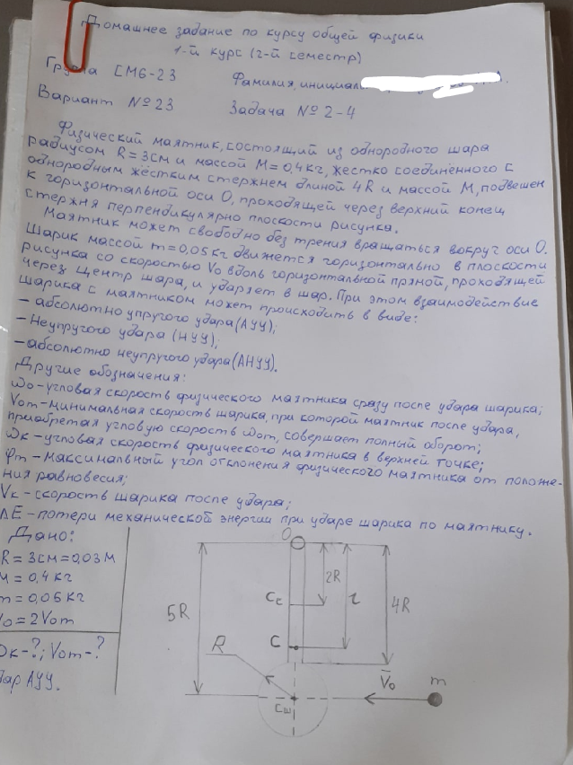 2022г Вариант 23 - ДЗ №2 - Динамика вращательного движения