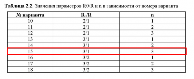 Функция =f(r) для нечётных вариантов имеет вид: =(Rn +rn )/2Rn . Таблица 2.2. Значения параметров R0/R и n в зависимости от номера варианта.