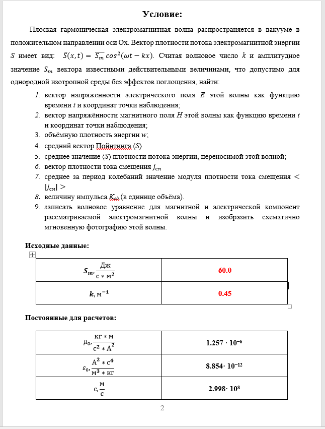 Задача 4: Электромагнитные волны вариант 4