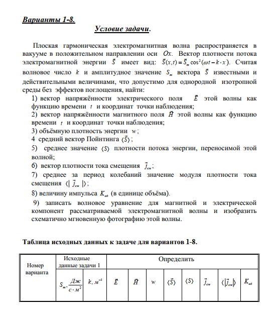 вакууме в положительном направлении оси Ox. Вектор плотности потока