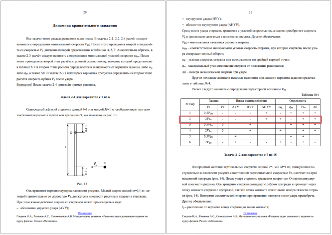 Задача 2.1 - Вариант 2 - Динамика вращательного движения
