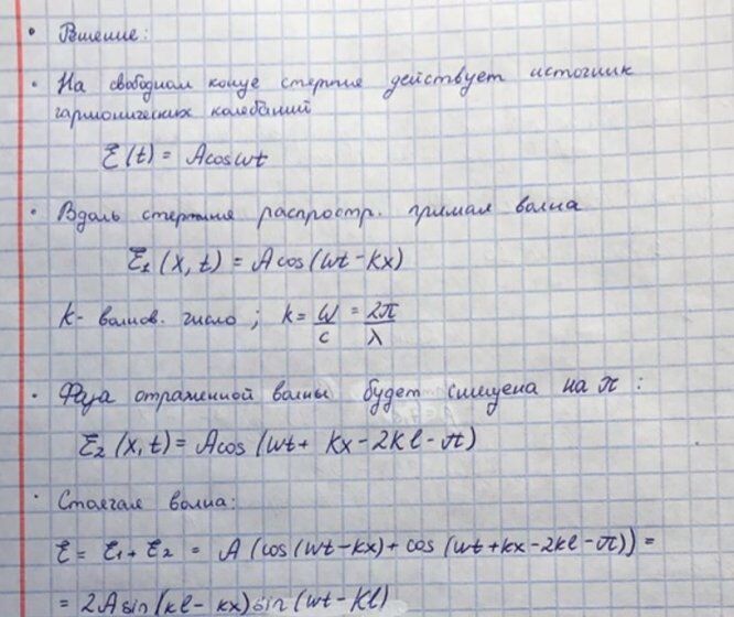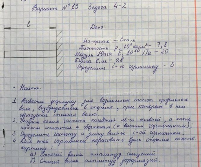 - Вывести формулу для возможных частот продольных волн, возбуждаемых в стержне, при которых в нём образуется стоячая волна;