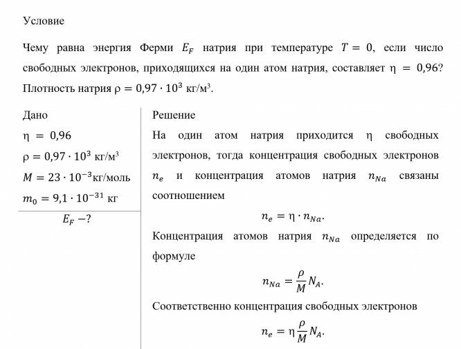 Чему равна энергия Ферми натрия при температуре , если число свободных электронов, приходящихся на один атом натрия, составляет ? Плотность натрия кг/м3.