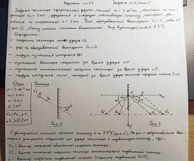 Однородный жёсткий вертикальный стержень длиной l=1 м и М=1 кг, движущийся поступательно в плоскости рисунка с постоянной горизонтальной скоростью V0, налетает на край массивной преграды (рис. 1). После удара стержень вращается вокруг оси O перпендикулярной плоскости рисунка. Ось вращения стержня совпадает с ребром преграды и проходит через точку контакта стержня с преградой, так что точка контакта лежит выше центра тяжести стержня (рис. 14). Потерями механической энергии при вращении стержня после удара пренебречь.