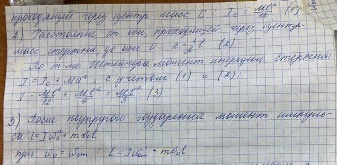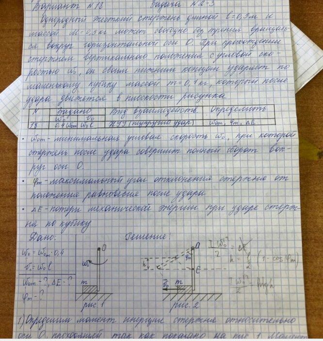 0m – угловая скорость стержня сразу после взаимодействия с кубиком, при условии, что