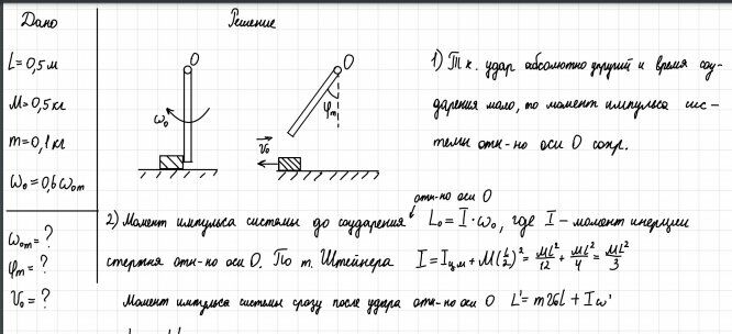 0m – угловая скорость стержня сразу после взаимодействия с кубиком, при условии, что