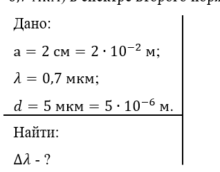 311. Какую разность длин волн может разрешить дифракционная решетка шириной 2 см и периодом 5 мкм в области красных лучей (0,7 мкм) в спектре второго порядка?