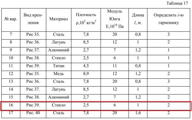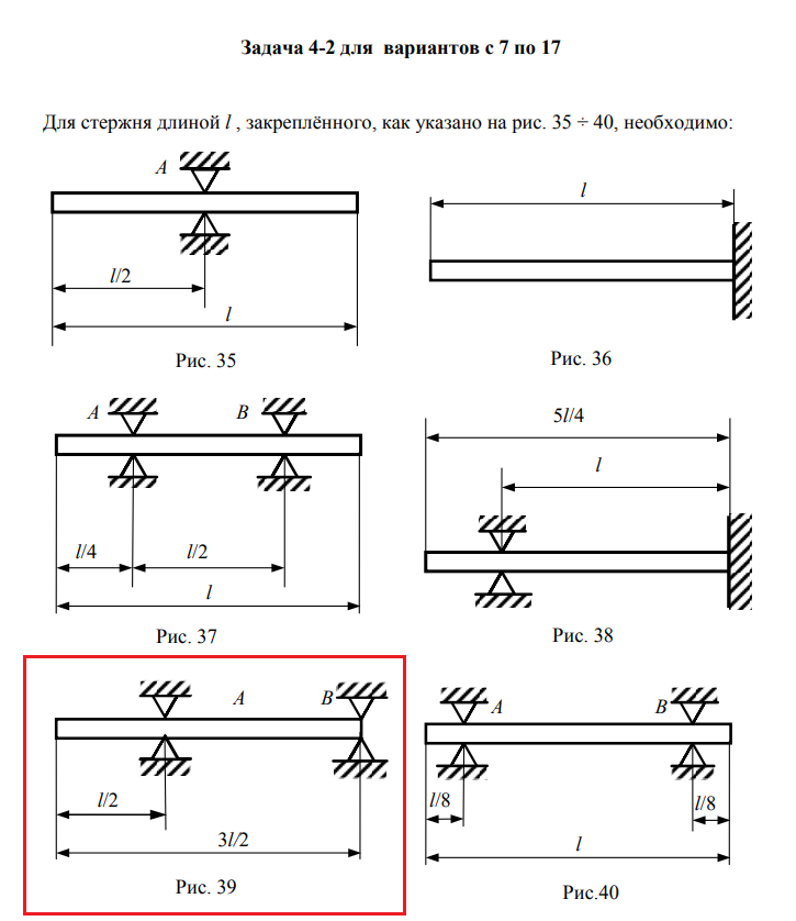 Для стержня длиной l , закреплённого, как указано на рис. 35 ÷ 40, необходимо:  вывести формулу для возможных частот продольных волн, возбуждаемых в стержне, при которых в нём образуется стоячая волна; .