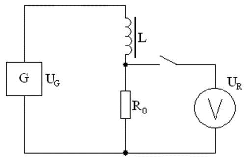 При испытании магнитного сердечника на частоте f с помощью установки, схема которой приведена на рис. 1, были получены значения напряжений на генераторе UG и сопротивлении UR. Вычислить магнитную проницаемость, индукцию и напряженность магнитного поля в к