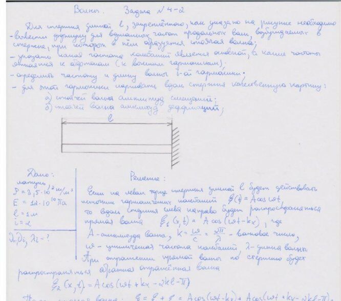 - Вывести формулу для возможных частот продольных волн, возбуждаемых в стержне, при которых в нём образуется стоячая волна;