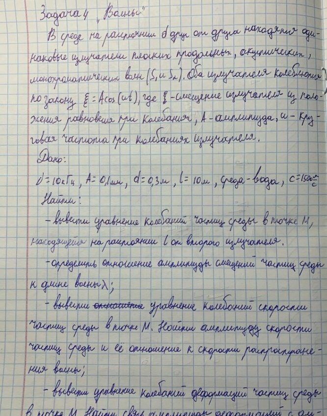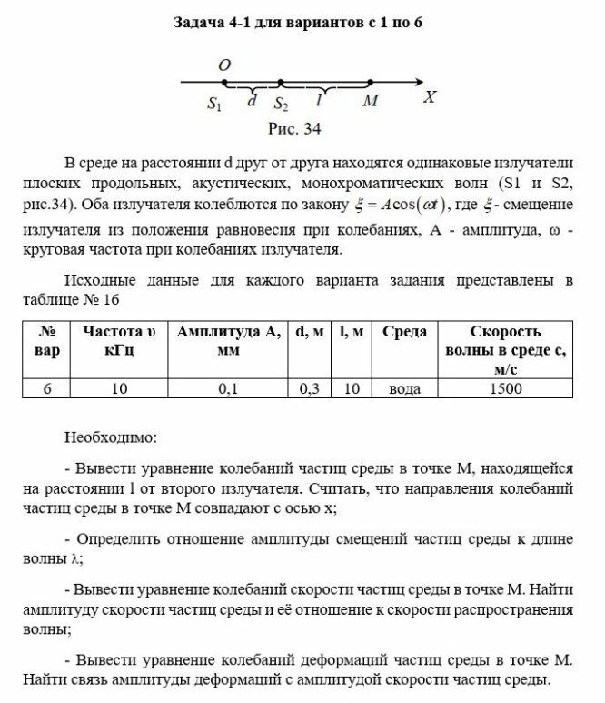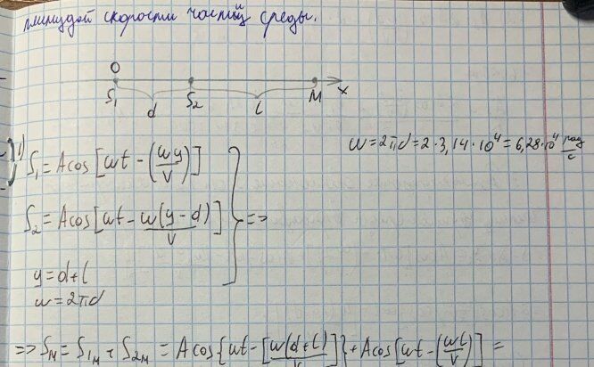 - Вывести уравнение колебаний частиц среды в точке М, находящейся на расстоянии l от второго излучателя. Считать, что направления колебаний частиц среды в точке М совпадают с осью x;