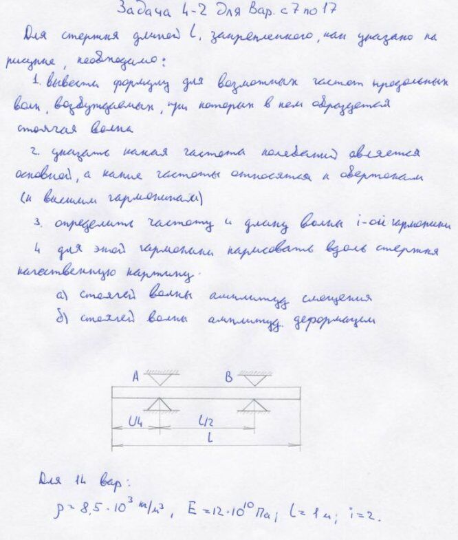 - Вывести формулу для возможных частот продольных волн, возбуждаемых в стержне, при которых в нём образуется стоячая волна;