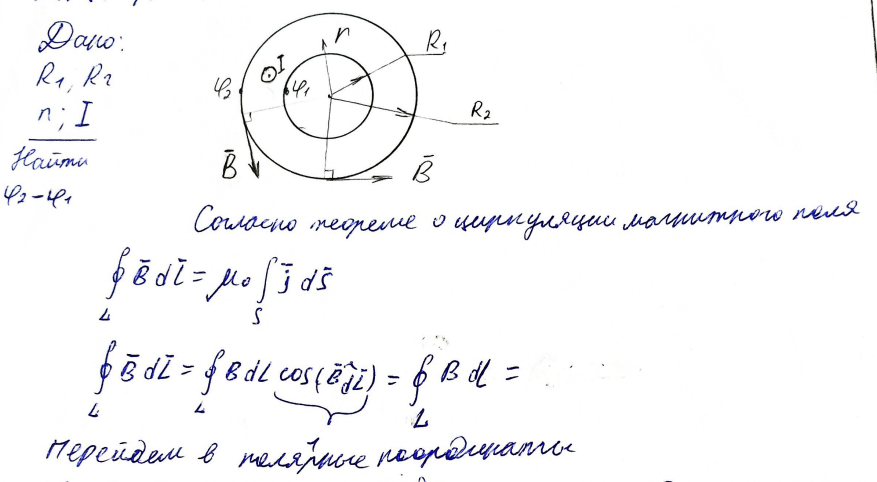 6.2.13. По металлической трубе с внутренним и внешним радиусами, равными, соответственно, R1 и R2 , течет равномерно распределенный ток I . Определите разность потенциалов, установившуюся между внутренней и наружной поверхностями трубы. Концентрация свободных электронов в металле равна n .