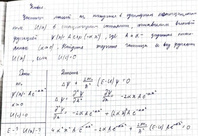 Частица массой m0 находится в одномерном потенциальном поле Ux в стационарном состоянии, описываемом волновой функцией.