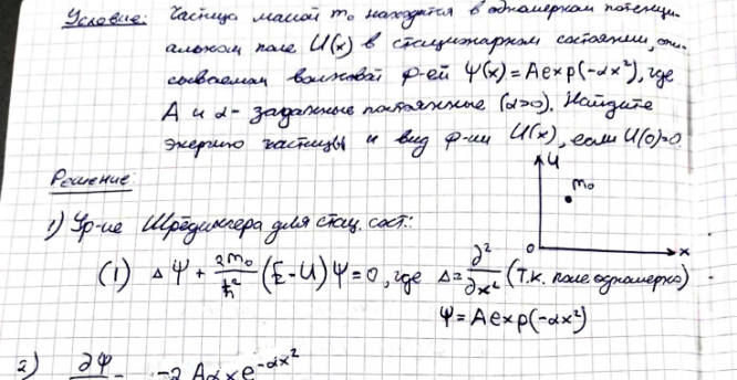 Частица массой m0 находится в одномерном потенциальном поле Ux в стационарном состоянии, описываемом волновой функцией.