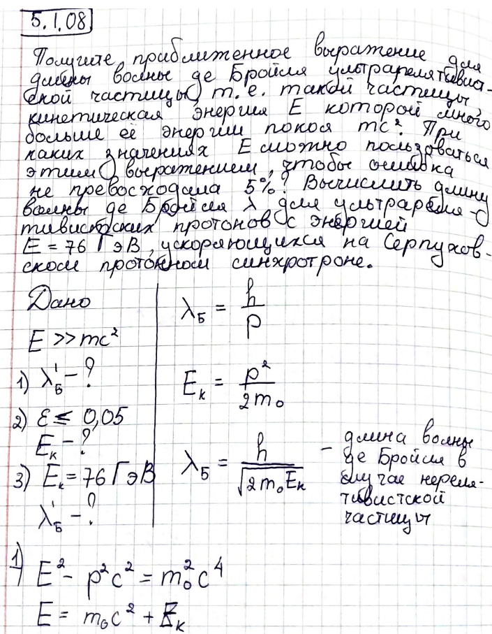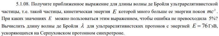 Получите приближенное выражение для длины волны де Бройля ультрарелятивистской частицы, т.е. такой частицы, кинетическая энергия E которой много больше ее энергии покоя .