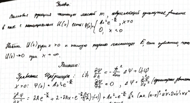 Волновая функция частицы массой m , совершающей одномерное движение в поле с потенциалом U x( ) , есть:.