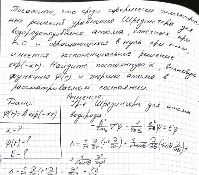Покажите, что среди сферически симметричных решений уравнения Шредингера для водородоподобного атома, конечных при r  0 и обращающихся в нуль при.
